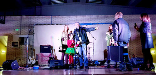 Montañana, con mi nieta Vega; Begoña, de la Alcaldía, anunciando