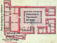 izquierda, al lado del palacio de la Diputación del Reino, donde
