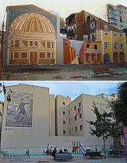con diversos murales.