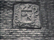 pared, sujetando un balcón y el escudo.
